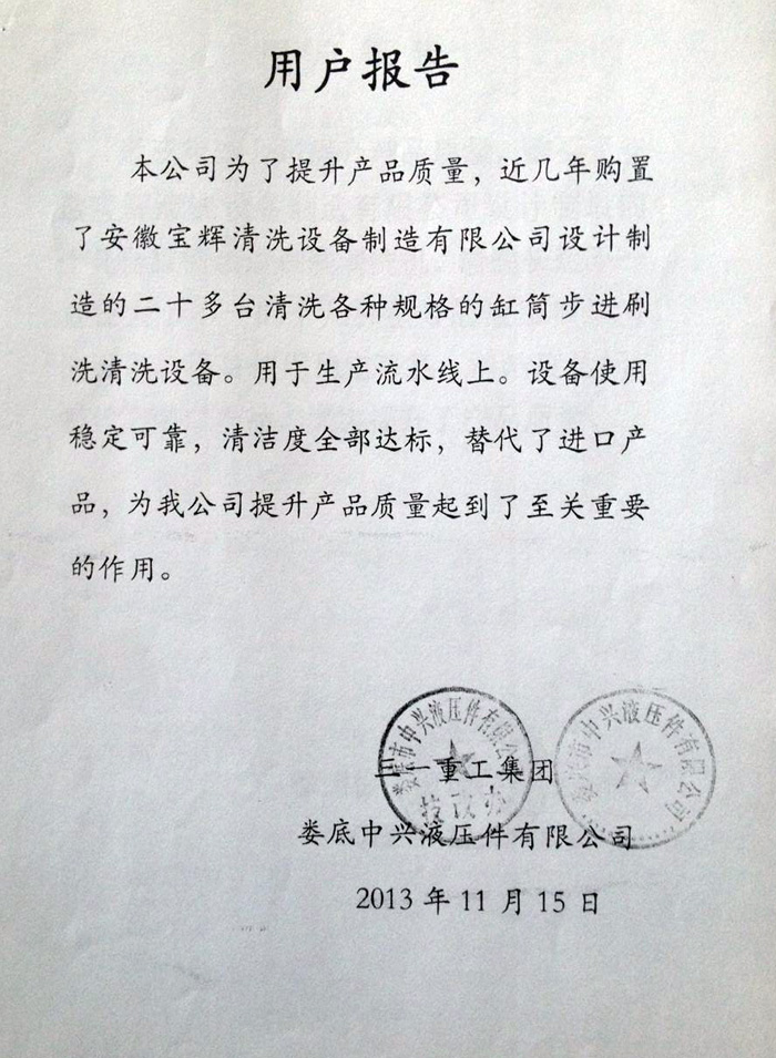 關(guān)鍵詞:用戶報(bào)告  發(fā)布日期:2015-03-05  來(lái)源:安徽寶輝清洗設(shè)備制造有限公司
